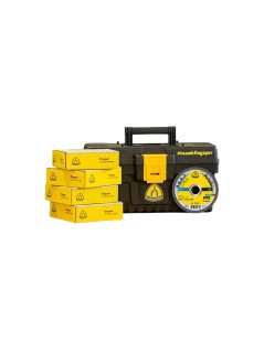 Caja de herramientas de diseño versátil y apilable, con 100 discos de corte Kronenflex A 60 TZ para acero y acero inoxidable.
