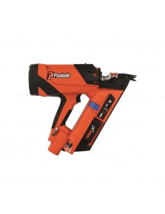 Clavadora autónoma para madera sobre madera, compatible con clavos en tiras de papel de 34° (50–90 mm). Funciona con batería y cartucho de gas, sin necesidad de compresor.